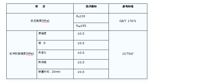 拉伸粘接強度的測定執(zhí)行JC/T547《陶瓷墻地磚膠粘劑》。